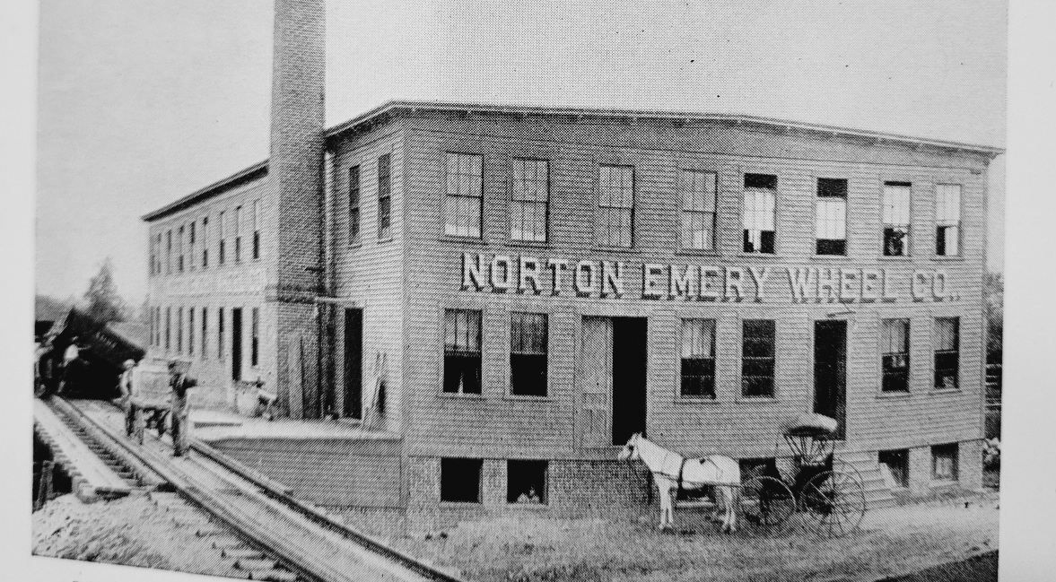 This story begins in 1886, almost 140 years ago, and ends in 2022. In 1886 the newly formed company, The Norton Emery Wheel Company, built its first factory building at Barbers Crossing in the far corner of the city of Worcester, on the Boylston town line. 140 years later, in 2022, at the start of the clearing and demolition of the area that Norton built up around that former farmland and railroad crossroads, there stood 45 buildings on 51 acres. There were only 10 employees those first months of 1886, and by the height of the post war boom, 5500 people worked there.
