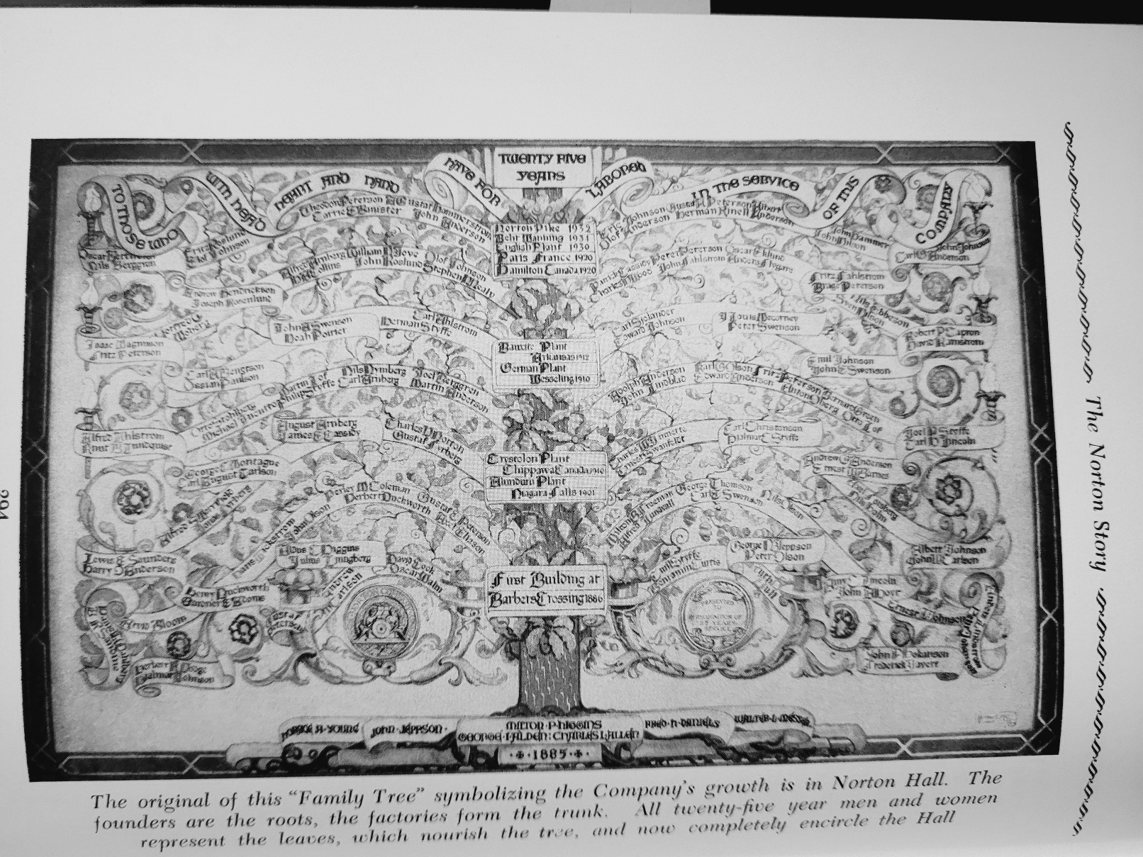 Clarence quickly worked his way up the levels of responsibilities to Plants Engineer, Vice President and then Board Member. Beginning in 1915, due to World War 1 demand, Clarence was responsible for building a large expansion in the Barber Crossing footprint. He essentially became a major constructor: four mills for machine manufacturing, two abrasive plants, storage facilities, and a power plant. And it was WW2 that propelled the construction of Plant 7 in 1948, the world’s largest one story five acre plant dedicated to making grinding wheels from start to finish under one roof. Prior to then the process had been spread on separate floors and in separate buildings. It was hailed as a triumph of method.